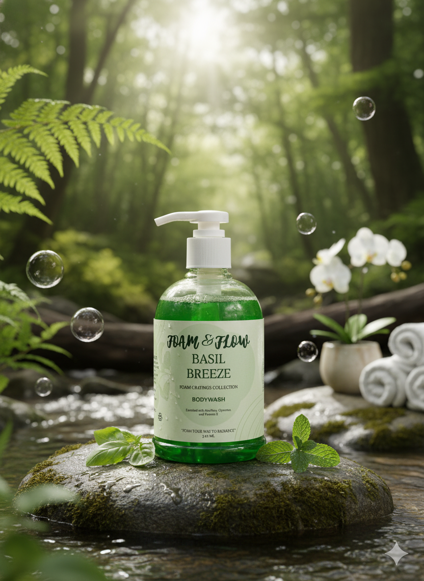 A refreshing green body wash that blends the crisp aroma of basil with a soft, sweet hint of pink secret. Enriched with Aloe Vera and Glycerine, it hydrates and soothes while a light, foamy lather gently cleanses your skin. Fresh, uplifting, and delicately scented — Basil Breeze turns every shower into a moment of calm and radiance.