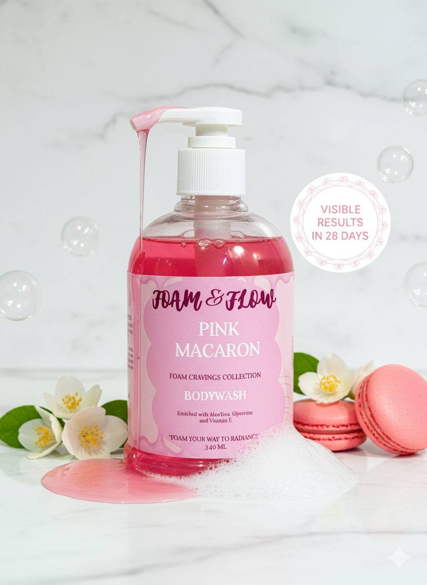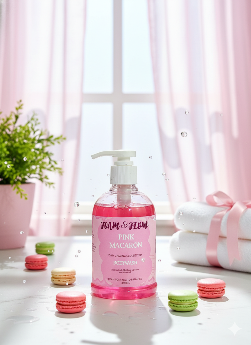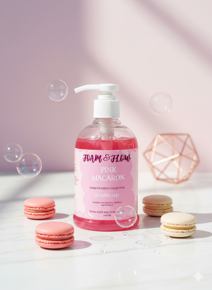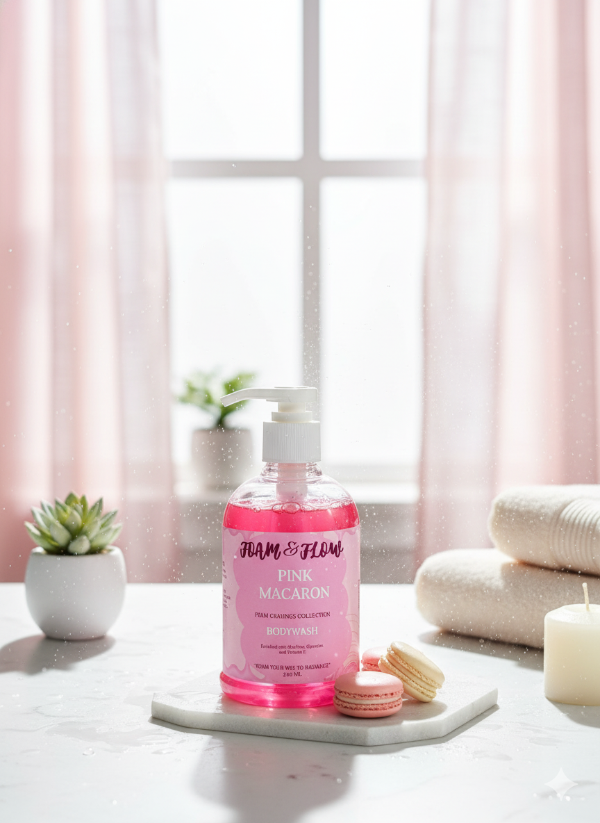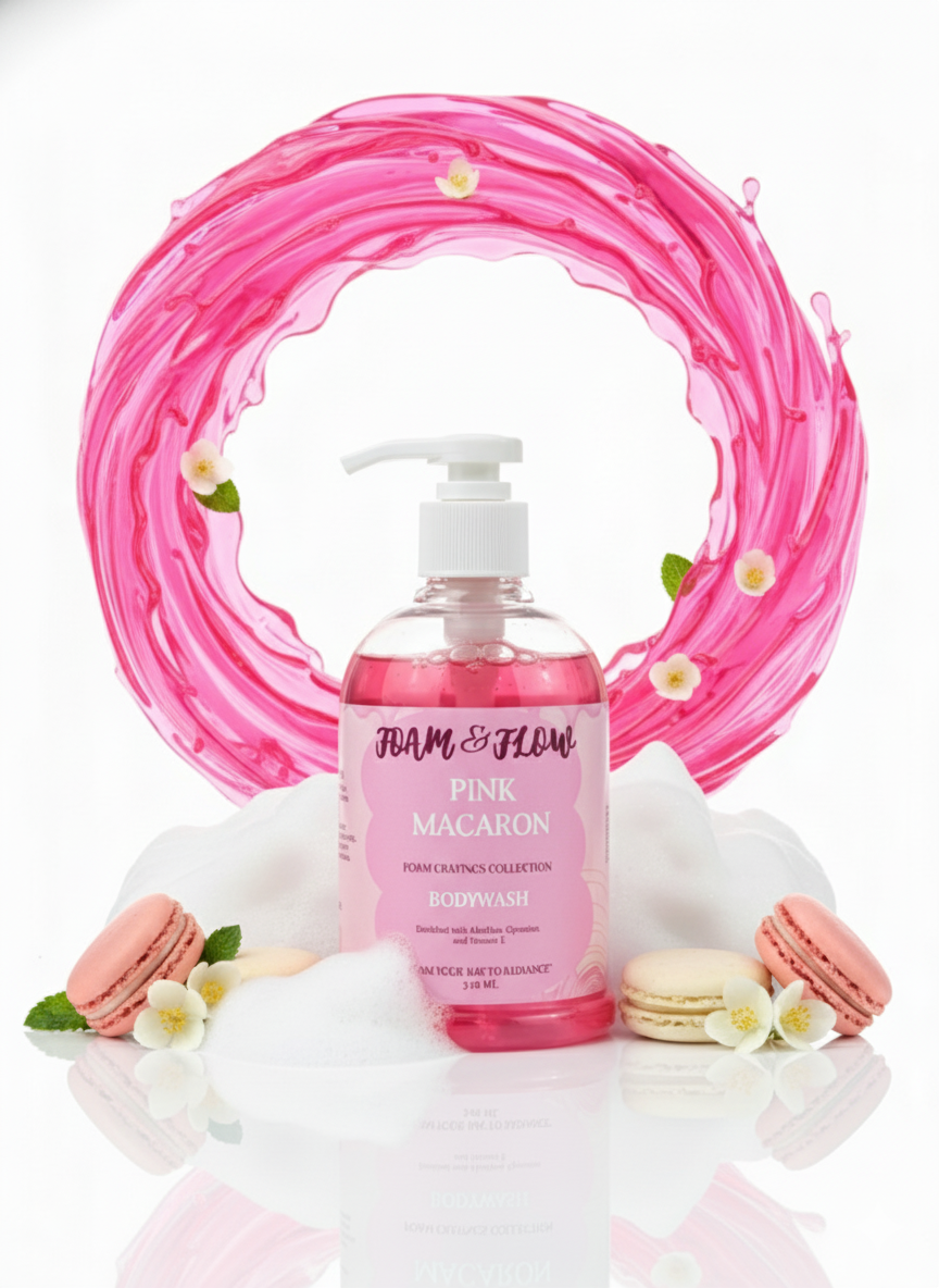 A blush-pink body wash that blends the sweet charm of a macaron with the floral elegance of enchanted bloom. Enriched with Aloe Vera, Glycerine, Vitamin E, and essential oils, it hydrates, soothes, and leaves skin soft and radiant. With its creamy, cloud-like lather, every shower becomes a sweet escape.